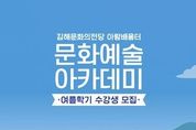 (재)김해문화관광재단 김해문화의전당 아람배움터는 시민의 문화예술 향유 기회를 확대하고 생활문화 역량을 강화하기 위해 2026년 문화예술아카데미 여름학기 수강생을 5월 11일부터 선착순 모집한다. 여름학기는 3개월 과정으로 운영되며, 월 단위 접수도 가능해 시민 누구나 자신의 일정과 관심 분야에 맞춰 유연하게 참여할 수 있도록 구성했다. 총 50여 개 강좌를 개설해 미술, 음악, 무용, 전통예술 등 다양한 분야에서 폭넓은 문화예술교육의 기회를 제공하고자 한다. 2026년 여름학기 강좌는 유화를 비롯한 미술 강좌, 가곡·플루트·보컬 등 1:1 맞춤형 프리미엄 강좌, 드럼·우쿨렐레·아코디언 등 음악 단체 강좌, 탭댄스를 포함한 무용 강좌, 흥겨운 남도소리와 가야금 등 전통 강좌 등으로 구성돼 시민들의 다양한 취향과 수준을 폭넓게 반영했다. 특히 소수 정예 수업과 개인별 맞춤 지도를 통해 실질적인 예술 역량 향상과 깊이 있는 문화 경험을 제공하는 데 중점을 두고 있다. 이번 여름학기는 시민들이 일상속에서 보다쉽고 즐겁게 문화예술을 접할 수 있도록 다양한 신규 강좌를 중심으로 프로그램을 확대