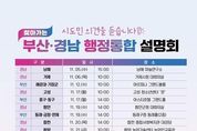 부산시와 '부산․경남 행정통합 공론화위원회'는 행정통합에 대한 시민들의 의견을 듣기 위해 '2025년 부산지역 하반기 현장 설명회'를 개최한다고 밝혔다. 설명회는 오늘(12일) 오전 10시 부산도시공사 아르피나 그랜드볼룸에서 해운대구․기장군 주민을 대상으로 시작하여 12월 초까지 부산 지역에서 총 8회에 걸쳐 순차적으로 개최될 예정으로, 부산·경남 행정통합에 관심 있는 시민이라면 누구나 참여할 수 있다. ▲[해운대·기장군] 11월 12일 오전 10시 아르피나 그랜드볼룸 ▲[중구·동구] 11월 17일 오후 2시 아스티호텔 그랜드볼룸 ▲[동래·금정·연제] 11월 19일 오후 2시 동래구청 동래홀 ▲[북구·강서] 11월 21일 오후 2시 강서구청 구민홀 ▲[영도구] 11월 24일 오후 2시 라발스호텔 볼레로룸 ▲[부산진구·사상구] 11월 26일 오후 2시 부산진구청 대강당 ▲[남구·수영구] 12월 3일 오후 2시 남구청 대강당 ▲[서구·사하구] 12월 5일 오후 2시 서구청 본관 대회의실에서 열릴 예정이다. 시와 위원회는 지난 상반기 시도민 토론회에 이어 부산·경남 행정통합에 대한 시민들의 궁금증과 우려를 해소하기