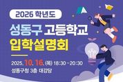 서울 성동구는 오는 10월 16일 오후 6시 30분부터 성동구청 3층 대강당에서 고등학교 진학을 앞둔 학생과 학부모를 대상으로 ‘2026학년도 고등학교 입학설명회’를 개최한다고 밝혔다. 이번 입학설명회는 예비 고등학생과 학부모를 대상으로 고교학점제에 대한 이해를 높이고, 지역 내 일반계 고등학교별 입학 정보를 제공하기 위해 성동구와 성동광진교육지원청(교육장 이긍연)이 공동으로 마련한 자리이다. 설명회는 ▲ 1부 고교 진학 대비 특강(강사: 성북강북교육지원청 송치경 장학사) ▲ 2부 성동구 학교별 입학설명회 및 1:1 상담(경일고, 금호고, 도선고, 무학여고, 성수고, 한대부고)으로 진행된다. 1부 특강은 송치경 장학사가 ‘고교 학점제와 대학 입시의 이해·전략’이라는 주제로 강연을, 2부 학교별 설명회는 각 학교의 입학 담당교사가 학교별 특성, 교육 운영 과정, 진로 진학 전략 등을 안내할 예정이다. 특히 학교별 1:1 상담은 설명회 당일 오후 6시부터 참석자 대상 선착순 현장 접수하며, 학교별 입학 담당교사가 맞춤형 개별 상담으로 진행할 예정이다. 설명회는 9월 26일부터 10월 2일까지 7일간 온