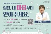 서울 서초구는 세계 정신건강의 날(10.10.)을 맞아 오는 16일 서초구청 대강당과 보건소 앞마당에서 정신건강 문제에 대한 구민의 인식을 제고하기 위해 ‘2025년 정신건강의 날 기념행사’를 개최한다고 밝혔다. 이번 행사는 ‘일단, 내 마음부터 안아주세요’라는 주제로, 구민들이 일상 속에서 자신과 타인의 마음 건강을 살피며 더불어 살아갈 수 있도록 돕는 데 중점을 두고 진행될 예정이다. 행사는 감성 인디밴드 ‘오아밴드’의 공연을 시작으로 문을 연다. 이어 오전 10시 30분부터는 서초구청 2층 대강당에서 정신건강 전문가 특강이 진행된다. 강연은 서울대학교병원 강남센터 정신건강의학과 교수이자 정부 정신건강정책 혁신위원회 위원으로 활동 중인 윤대현 교수가 맡는다. 윤 교수는 ‘현대인의 무기력과 우울’을 주제로, 급변하는 사회 속에서 많은 사람들이 겪고 있는 정서적 어려움을 짚어보고 이를 효과적으로 극복할 수 있는 방법을 제시할 예정이다. 이번 강연은 행사 주제인 ‘일단, 내 마음부터 안아주세요’와 연계해 구민들이 감정을 다스리는 지혜를 얻는 뜻깊은 시간이 될 것으로 기대된다. 같은 날 오전 10시부터 오후 2시 30분까지는