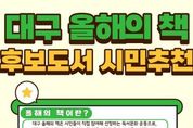 대구광역시는 책 읽는 도시 조성을 위해 매년 ‘대구 올해의 책’ 10권을 선정·홍보하고 있다. 올해는 대구도서관 개관을 계기로 시민 참여를 더욱 확대하고자 시민추천단을 운영하여 시민 관심도와 참여도를 한층 높일 계획이다. 2026년 ‘대구 올해의 책’ 선정은 △도서추천단 후보도서 추천 △도서선정위원회 심의 △온라인 시민투표 및 최종 도서 선정의 방식을 거치게 된다. 도서추천단에는 분야별 독서 전문가, 구·군 및 교육청 대표사서, 시민, 지역출판협동조합 등 다양한 주체가 참여한다. 시민추천단은 대구도서관 누리집을 통해 대구시민이라면 누구나 참여 가능하며, 어린이·청소년·성인 분야별로 1권씩 총 3권까지 추천할 수 있다. 추천 대상 도서는 △국내 작가가 발간한 2년 이내 단행본 △사회적으로 공감할 수 있는 주제의 도서 △스테디셀러로 자리매김할 수 있는 도서여야 한다. 다만 종교·정치 성향 도서와 과거 ‘대구 올해의 책’ 선정 도서는 제외된다. 추천 기간은 2월 24일 오후 6시까지다. 시민추천단이 추천한 도서는 상위 30권을 선정하고 다른 후보도서와