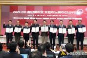 홍천군은 2월 2일, 강원특별자치도, 춘천시와 함께 춘천 ICT벤처 센터에서 「강원 첨단 바이오 오픈 이노베이션 프로그램」 업무협약식과 사업설명회를 개최하고, 올해부터 사업을 본격 확대 추진한다고 밝혔다. 이번 협약식에는 앱티스, 휴젤을 비롯해 강원테크노파크, 스크립스코리아항체연구원, 춘천바이오산업진흥원, 강원대학교 산학협력단 등 민관 산학연 9개 협력 주체가 참여했다. 홍천군은 이번 협약을 통해 홍천 국가항체클러스터를 중심으로 기업 지원, 연구 협력, 기술 검증 등 각 기관의 역량을 결집해 도내 바이오산업을 체계적으로 성장시키기 위한 강력한 협력체계(거버넌스)를 구축할 계획이다. 이날 사업설명회에서 홍천군은 별도의 발표 세션을 통해 홍천군만의 바이오기업 지원 정책을 공유했다. 특히 이번 프로그램이 2030년까지 운영됨에 따라, 군은 항체 중심의 신약 개발 분야에서 관내 기업들이 실질적인 혜택을 볼 수 있도록 적극 지원할 방침이다. ‘오픈이노베이션’ 전략은 대기업의 인프라와 중소, 벤처기업의 기술력을 결합하는 방식으로, 신약 개발 시 발생하는 막대한 비용과 시간 손실 우려를 줄일 수 있