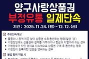 양구군이 이달 12일까지 양구사랑상품권 부정 유통에 대한 집중 단속에 나선다. 이번 단속은 상품권의 부정 유통을 근절하고 건전한 상품권 유통질서를 확립하여 지역사랑상품권의 지속가능성 및 신뢰성을 확보하기 위하여 마련됐다. 양구군은 부정 유통 방지를 위하여 군, 한국조폐공사, NH농협은행 양구군지부로 이루어진 합동 단속반을 편성하여 상품권 부정 유통 일제 단속 홍보, 이상 거래분석, 이상 거래 발생 가맹점 현장 조사, 위반행위 적발 후속 조치 등을 실시한다. 부정 유통 단속 대상은 △물품의 판매 또는 용역의 제공 없이 상품권을 수취·환전하는 행위 △실제 매출 금액 이상의 거래를 통해 상품권을 수취·환전하는 행위 △가맹점이 등록 제한 업종을 영위하는 경우 △지역사랑상품권의 결제를 거부하는 경우 △현금영수증 발급을 거부하는 행위 등이다. 양구군은 단속 기간 동안 부정 유통 신고센터를 운영하고, 이상 거래 분석시스템을 통해 의심 거래를 사전에 추출한 후 해당 가맹점에 대한 현장 단속을 진행한다. 양구군은 적발된 가맹점에 대해서는 경중에 따라 현장 계도, 가맹점 등록취소, 과태료 부과, 부당이득