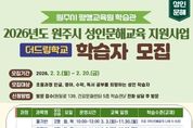 원주시 학습관은 2026년 성인문해교육 지원사업으로, 학력 취득 기회를 놓친 성인을 대상으로 한 기초·디지털 문해교육 ‘더드림(The Dream)학교’를 본격 운영한다. 이번 교육은 기초 성인문해교육과 디지털 문해교육을 통합한 원주형 성인문해교육 지원사업이다. 단계별 한글 교육 더디딤 4개 반(13명)과 맞춤형 심화 교육 더채움 4개 반(32명)으로 구성된다. 교육과정은 국가평생교육진흥원 성인문해 교재를 활용한 단계별 한글 교육을 중심으로, 맞춤형 생활 문해(영어·수학·독서)와 창의적 체험활동을 병행해 학습자의 일상 적응력과 자신감 향상을 도모한다. 학습자 모집은 2월 20일까지며, 전화로 사전 상담 후 학습관을 방문해 신청하면 된다. 수강료는 전 과정 무료이며, 학습 교재도 제공된다. 자세한 사항은 학습관 평생교육팀으로 문의하면 된다. 한편 학습관은 성인문해교육에 대한 사회적 공감대 확산을 위해 건강문화센터 1층 로비에서 학습자 시화 작품 전시회를 운영하고, 배움의 성과를 시민과 공유하는 홍보 활동도 함께 추진할 계획이다. 윤석재 학습관장은 “이번 교육은 배움의 기회를 놓친 시민들이
