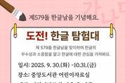 인천광역시교육청중앙도서관은 제579돌 한글날을 맞아 9월 30일부터 10월 31일까지 어린이들이 즐겁게 한글을 배우고 도서관을 체험할 수 있는 특별행사 ‘도전! 한글 탐험대!’를 운영한다. 이번 행사는 어린이자료실에서 진행하며, 어린이들이 비치된 문제지를 풀며 한글의 독창성과 우수성을 체험할 수 있도록 준비했다. 문제는 어린이 눈높이에 맞춰 쉽고 재미있게 구성했으며, 3문제 이상을 맞히면 소정의 기념품을 받을 수 있다. 자세한 사항은 중앙도서관 누리집 또는 어린이자료실로 문의하면 된다.