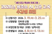 삼척시는 3월 19일부터 3월 25일까지 삼척시민을 대상으로 ‘2026년 왕초보 AI 입문 교육’ 수강생을 모집한다고 밝혔다. 이번 교육은 생성형 인공지능 기술에 대한 이해를 바탕으로 일상생활과 업무에 활용할 수 있는 실전 능력 향상을 목적으로 마련됐다. 교육은 4월 8일부터 5월 13일까지 매주 수요일 오후 6시 30분부터 3시간씩 평생학습센터 컴퓨터실에서 운영된다. 모집인원은 20명이며, 삼척시평생학습센터 누리집을 통해 선착순으로 신청할 수 있다. 자세한 사항은 평생학습센터 학습기획팀으로 문의하면 된다. 진영미 소장은 “이번 교육을 통해 디지털 환경 변화에 대한 대응 역량을 높이고, ‘AI는 어렵다’는 인식을 완화해 시민들의 디지털 기초 역량을 강화하는 계기가 되기를 바란다”라며 “시민 여러분의 많은 관심과 참여를 부탁드린다”라고 말했다. 한편, 삼척시는 2024년 평생학습도시 재지정 평가에서 재지정과 함께 ‘우수 평생학습도시’로 선정됐으며, 세대 공감 특성화 프로그램 등 다양한 사업을 통해 지역 평생학습 활성화에 힘쓰고 있다.