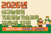 청양군이 최근 농어촌 기본소득 시행 등으로 급증한 신규 귀농인들의 안정적인 연착륙을 돕기 위해 영농 현장의 생생한 노하우를 전수하는 밀착형 지원에 나섰다. 군은 지난 12일, 신규 귀농인의 기술 습득과 영농 정착을 돕는 ‘2026년 선도농가 현장실습 교육’ 대상 8팀을 확정하고, 청양혁신플랫폼 와유에서 약정 체결 및 사전 교육을 실시하며 사업의 본격적인 시작을 알렸다. 이번 사업은 경험이 부족한 신규 귀농인(연수생)과 풍부한 영농 경험을 가진 베테랑 농업인(선도농가)을 1:1로 매칭해, 작물 재배 기술은 물론 농산물 가공·판매·마케팅 등 농업 경영 전반에 걸친 실전 지식을 전수하는 멘토링 프로그램이다. 특히 올해는 ‘청양군 농어촌 기본소득 시범 사업’ 시행 이후 귀농 희망자가 대폭 늘어남에 따라, 군은 관련 예산을 증액 편성하고 지원 규모를 지난해 5팀에서 8팀으로 확대해 귀농인들의 뜨거운 호응에 응답했다. 지난 12일 실시되는 교육에서는 본격적인 현장실습에 앞서 연수 과정에서의 유의 사항과 지원금 신청을 위한 시스템 활용법 등을 상세히 안내됐다. 또한 선도 농가와 연수생 간의 공식적인