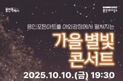 용인문화재단은 오는 10월 10일 오후 7시 30분, 새롭게 단장한 용인포은아트홀 야외광장에서 ‘가을 별빛 콘서트’를 개최한다. 이번 공연은 가을밤의 정취 속에서 시민들에게 특별한 추억을 선사하고, 용인의 대표 광장형 축제를 알리기 위해 마련됐다. ‘가을 별빛 콘서트’에는 가수 거미, 유리상자 이세준, 힙합 아티스트 행주·마린·블랙나인, 그리고 소프라노 정나리가 출연해 대중음악·클래식·힙합을 아우르는 다채로운 무대를 선보일 예정이다. 이번 공연은 무료로 진행되며, 사전 댓글 이벤트를 통한 예약석(현재 마감)과 공연 당일 현장 선착순 입장석으로 운영된다. 현장 참여자는 오후 5시부터 대기 후 오후 6시부터 선착순 입장할 수 있으며, 돗자리석과 계단석 등 다양한 방식으로 자유롭게 관람할 수 있다. 특히 이번 ‘가을 별빛 콘서트’는 시민 참여형 현장 이벤트도 마련됐다. 입장객 1,800명에게는 별 모양 무드등이 기념품으로 증정되며, 공연 전에는 중계 카메라 이벤트를 통해 용인포은아트홀 공연 티켓이 제공된다. 본 공연에 앞서 오후 4시부터 예술교육 매개자 ‘아트러너’가 운영하는 문화예술 체험부스가 열린다. ‘가을밤,
