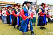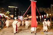 정조대왕의 깊은 효심과 애민 정신을 기리는 ‘2025 정조대왕효문화제·정조대왕능행차’가 27일 정조효공원과 융릉 일원에서 막을 올렸다. 정조대왕효문화제는 지난 2002년부터 이어져 온 화성특례시 대표 역사문화축제로, 역사적 의의와 현대적 감각을 결합한 다채로운 프로그램이 시민과 관광객을 맞이하고 있다. 첫날인 27일에는 1789년 아버지 사도세자의 묘를 조선 최고의 명당, 화성 현륭원으로 옮기는 과정을 400여 명의 시민들과 함께 재현한 야간행렬 ‘현륭원 천원(遷園)’이 선소리와 함께 장엄한 장면을 연출하며 관람객들에게 큰 감동을 안겼다. 개막식에 앞서 정명근 화성특례시장이 26명의 효행자에게 ‘효행상’을 시상하며 정조대왕의 숭고한 효심을 기렸다. 효행자에게는 개막식 좌석 앞자리를 배정해 정조대왕이 ‘양로연’에서 노인들을 위해 왕의 앞자리를 내어주었다는 일화를 따르기도 했다. 개막식에서는 재궁(왕실 장례용 관)을 묏자리에 모시는 ‘하현궁 퍼포먼스’에서는 정조대왕이 어머니 혜경궁 홍씨의 회갑잔치 날 효도와 감사의 의미를 담아 복사꽃을 드렸던 것처럼 주요 내빈들이 복사꽃을 재궁 위에 헌화하는 퍼포먼스를