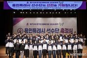 용인특례시는 30일 시청 에이스홀에서 ‘제72회 경기도체육대회 2026 광주’에 참가하는 선수단 출정식을 개최했다. 제72회 경기도체육대회는 4월 16일부터 18일까지 3일간 광주시 일원에서 열리며, 용인특례시는 육상, 축구, 태권도 등 26개 종목에 선수 312명이 출전한다. 출정식에는 이상일 시장을 비롯해 체육회 임원과 종목단체장, 선수단 등 약 300명이 참석했다. 이상일 시장은 격려사를 통해 “그동안 대회를 위해 열심히 준비해 온 선수단 여러분들 정말 자랑스럽다”며 “이번 대회에서 갈고닦은 실력을 마음껏 발휘해 원하는 성과 거두시길 바라고, 모두가 한 단계 더 성장하는 계기가 되길 바란다”고 말했다. 이 시장은 “선수들이 더 좋은 환경에서 훈련하고 기량을 펼칠 수 있도록 지원을 확대하기 위해 노력하고 있다”며 “앞으로도 여러분과 함께 힘과 지혜를 모아 오늘보다 더 나은 내일을 만들어가겠다”고 했다. 이 시장은 출정식 이후 집무실에서 직장운동경기부 감독과 종목단체 회장단을 대상으로 간담회를 열어 선수단을 격려하고, 현장의 애로사항과 건의사항을 청취했다. 간담회에는 우상