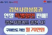 김천시는 오는 12월 한 달 동안 김천사랑상품권을 18% 특별 할인 판매한다고 28일 밝혔다. 시는 이번 특별 할인판매로 연말 소비 촉진을 비롯해 침체된 지역 상권 에 활력을 불어넣고, 지역경제 회복에도 긍정적인 영향을 미칠 것으로 기대하고 있다. 특히, 시는 12월 한 달 동안 진행되는 이번 특별 할인판매 기간에 한하여 개인 구매 한도를 월 70만 원으로 확대해 더 많은 시민이 혜택을 누릴 수 있도록 할 방침이다. 이번 연말 특별 할인판매로 연말 선물·장보기 등 가계 지출이 늘어나는 시기에 실질적인 가계 부담을 덜어주는 동시에 지역 내 소비 확대로 이어져 지역 상권 전반에 크게 도움이 될 전망이다. 다만, 예산 소진 시 특별 할인판매 기간 중이라도 조기 종료될 수 있으니, 혜택을 놓치지 않으려면 빠른 참여가 필요하다. 김천시 관계자는 “연말을 맞아 진행하는 김천사랑상품권 특별 할인판매가 상권 활성화와 지역경제에 실질적인 보탬이 되기를 바라며, 많은 시민이 혜택을 누리고, 조금 더 따뜻한 연말을 보내는 데 도움이 됐으면 한다.”라고 말했다.