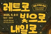 (재)부산진문화재단은 부산진구 개금3동 ‘개금 추억길’에서 11월 8일 오후 4시에서 8시까지 골목의 기억과 사람들의 이야기가 어우러지는 '부산진구 온마을축제' 개금 추억길 축제 ‘레트로, 내일로, 빛으로’ 행사를 개최한다고 밝혔다. 이번 행사는 부산진문화재단이 주최하고 지역주민들로 구성된 주민기획단이 함께 준비하여 더욱 의미가 깊다. 개금 추억길은 과거 철길이 지나던 자리로, 오랜시간 지역의 역사와 생활의 흔적이 남아 있는 골목이다. 이번 축제는 그 시절의 정취를 되살리며 ‘추억의 길을 내일의 길로 잇는다’라는 뜻을 담아, 과거의 추억을 현재의 문화로 이어가는 시간을 마련한다. 이번 행사에는 체험·사진전, 골목놀이, 버스킹, 먹거리부스 등 다양한 프로그램이 진행된다. 또한, 풍선아트, 소원등 만들기, 손난로 만들기 등 세대를 잇는 체험프로그램과 추억의 골목놀이가 마련돼 남녀노소 함께 즐길 수 있다. 자세한 안내는 부산진문화재단 홈페이지 ‘문화참여’게시판에서 확인할 수 있다. 기타 문의사항은 예술지원팀으로 하면 된다.