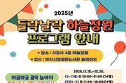 부산시는 시청 4층 하늘정원과 3층 열린도서관에서 전 세대를 위한 생태․인문 체험 프로그램을 운영한다고 밝혔다. 이번 프로그램은 ▲도심 속 녹색 공간인 하늘정원에서 자연과 교감하며 배우는 생태학습 프로그램과 ▲철학적 사유를 통해 정서적 치유를 도모하는 인문 프로그램으로 구성했다. 먼저, 시청 4층 하늘정원에서는 오는 11월 12일부터 12월 20일 중에 유아․어린이․가족 대상으로 생태학습, 전통놀이 등의 다채로운 활동이 이어진다. 대표 프로그램은 ▲기차놀이, 제기차기, 대문놀이 등 전통놀이를 체험하는 ‘와글와글 골목 놀이터’ ▲환경생태 동화와 만들기 활동이 결합된 ‘생태야, 놀자!’ ▲생태 그림책 작가와 함께하는 가족 생태 예술체험 ‘나의 정원 속 동물 친구들’ 등이다. 한편, 시청 3층 열린도서관에서는 오늘(6일)과 11월 13일 오후 7시, 성인을 대상으로 한 '철학 카페: 사라짐과 남겨진 질문들'을 마련했다. 이번 행사는 가을 ‘책 추천(북 큐레이션)’ 전시 '사라짐의 서가'를 바탕으로, ‘삶과 죽음’, ‘존재와 사라짐’이라는 보편적 주제를 대담자와 시민이 함께 탐구하는 인문학 프