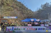 홍천읍 이장협의회(회장 신교인)는 2026년 1월 28일 오전 11시 30분, 남산 입구에서 산불 없는 안전한 한 해를 기원하는 산불 예방 기원 산신제를 봉행했다. 이날 행사에서는 용문-홍천철도 조기 착공을 함께 기원했다. 이번 산신제는 홍천읍 이장협의회 주관으로 열렸으며, 이인식 홍천읍장과 직원, 홍천읍 이장, 남녀 의용소방대(대장 신상욱, 이미영) 등 40여 명이 참석해 산불 예방과 지역 주민의 안녕을 한마음으로 기원했다. 또한 참석자들은 용문-홍천 광역철도 예비타당성조사 통과를 함께 축하했으며, 사업이 조기에 착공될 수 있도록 한뜻으로 염원했다. 산신제는 예로부터 자연재해를 막고 마을의 평안을 비는 전통 제례로 전해져 왔으며, 이날 행사는 엄숙한 분위기 속에서 진행됐다. 홍천읍 이장협의회는 산불 취약 시기를 앞두고 주민 안전 의식을 다지는 자리로 의미를 더했다고 밝혔다. 신교인 홍천읍 이장협의회장은 “건조한 날씨로 산불 위험이 커지는 시기인 만큼, 산신제를 통해 산불 예방의 중요성을 다시 한번 되새기고자 했다”라며, “앞으로도 주민들과 함께 산불 없는 홍천을 만들기 위