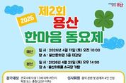 서울 용산구가 4월 25일 토요일 오후 2시, 용산아트홀 소극장 가람(녹사평대로 150)에서 ‘제2회 용산 한마음 동요제’를 개최한다. 전국에서 예선을 통과한 6세~13세 어린이 22개 조(팀)가 참가해 맑은 목소리로 무대를 선보일 예정이다. 이번 동요제는 용산문화원이 주관하고 용산구가 지원한다. 아이들이 꿈과 재능을 마음껏 펼칠 수 있는 문화예술의 장을 마련함으로써, 건전한 정서를 기르고 음악적 역량을 발휘할 수 있는 기회를 제공하고자 기획됐다. 지난해 9월 성황리에 열린 제1회 동요제에 이어 두 번째로 열리는 행사다. 참가자들은 자유곡을 독창 또는 중창으로 선보이며, 심사는 전문 심사위원 4명이 맡는다. 심사위원단은 음악성, 표현력, 창의성, 무대 태도(매너), 관객 호응도 등 다양한 요소를 종합적으로 평가한다. 시상은 총 5개 부문으로 진행되며, 각 부문 수상자에게는 상장과 트로피, 상금이 수여된다. 특히 대상 수상자에게는 상금 100만 원이 주어진다. 구는 안전한 행사 운영을 위해 당일 무대, 조명, 계단 등 시설 전반을 면밀히 점검하고 현장에 안전요원들을 배치해 아