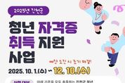 충북 진천군 청년센터는 10월부터 청년들의 직무 역량 강화와 진로 설계를 돕고 경제적 부담을 완화하기 위해 ‘청년 자격증 취득 지원사업’을 본격 시행한다고 9일 밝혔다. 이번 사업은 어학 20종, 한국사능력검정시험(기본·심화), 국가공인자격증 등 다양한 시험의 응시료를 지원하며, 자격증별 최대 10만 원까지 지원한다. 단, 운전면허시험은 지원 대상에서 제외되며, 기타 자세한 내용과 신청 방법은 진천군 청년센터 공식 블로그와 SNS(인스타) 채널을 통해 확인할 수 있다. 군 청년센터는 이번 사업을 통해 지역 청년들이 필요한 자격증을 취득하는 데 실질적인 도움을 주고, 지역 내 청년들의 진로 탐색과 경쟁력을 강화할 수 있을 것으로 기대하고 있다. 군 청년센터 관계자는 “청년들이 자격증 취득 과정에서 겪는 비용 부담을 줄여 안정적으로 미래를 준비할 수 있도록 지원하겠다”며 “앞으로도 청년들의 성장을 돕는 다양한 지원 정책을 지속적으로 추진해 나가겠다”고 말했다.