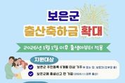 충북 보은군은 저출생 극복과 출산·양육 가정의 경제적 부담 완화를 위해 2026년부터 출산축하금 지원을 확대 시행한다고 밝혔다. 그동안 군은 2025년까지 자녀 수와 관계없이 출생아 1명당 출산축하금 100만 원을 지급해 왔으나, 2026년부터는 자녀 수에 따라 지원 금액을 차등 지급하는 방식으로 제도를 개선해 양육 가정에 실질적인 도움이 되도록 했다. 지원 대상은 2026년 1월 1일 이후 출생아로, 첫째는 200만 원, 둘째 700만 원, 셋째 1,000만 원, 넷째 1,500만 원, 다섯째 이상은 2,000만 원을 지급한다. 첫째는 일시금으로 지급하며, 둘째 이상은 출생 후 4년간(0~4세) 연차별로 분할 지급하고 매년 생일이 속한 달의 다음 달 말까지 지급할 예정이다. 지원 기준은 2026년 1월 1일 이후 보은군에 출생신고 한 가정으로 보호자가 출생일 기준 6개월 이전부터 군에 주민등록을 두고 있어야 하며, 출산축하금 지원사업에 대한 자세한 사항은 건강증진과 모자보건팀으로 문의하면 된다. 홍종란 보건소장은 “출산축하금 지원 확대를 통해 출산과 양육에 대한 사회적 책임을 강화하고자 한다”며