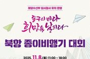부산 동구는 오는 11월 8일 부산항 북항 친수공원에서 ‘북항 종이비행기 대회(동구와 바다, 희망을 날리다)’를 개최한다고 밝혔다. 행사는 오전 11시부터 오후 6시까지 진행되며, 종이비행기 날리기 대회를 비롯해 공연과 체험활동 등 다채로운 프로그램이 마련된다. 종이비행기 날리기 대회는 세계대회가 열릴 정도로 인기를 얻고 있는 이색 스포츠로, 남녀노소 누구나 쉽게 참여할 수 있는 축제형 스포츠로 자리 잡았다. 이번 대회는 해수부 임시청사 유치 환영의 의미를 담은 종이비행기 함께 날리기 퍼포먼스로 막을 연다. 이후 개인전(멀리날리기·오래날리기)과 단체전(대형 종이비행기 착륙시키기)이 이어진다. 사전 온라인 접수를 통해 총 900명(멀리날리기 600명, 오래날리기 300명), 50팀이 참가하며, 부문별 수상자에게는 메달이 수여된다. 현장 방문객을 위한 체험 프로그램도 풍성하다. 비행기 타투, 종이비행기 착륙 ‧ 골인시키기 등 상시 프로그램이 운영되며, 미션을 완수하면 기념품을 받을 수 있는 스탬프투어 이벤트 및 문화공연이 준비되어 있어, 아이부터 어른까지 세대가 함께 즐길 수 있는 특별한 하루가 될 전