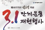 대구 중구는 제107주년 3.1절을 맞아 오는 3월 1일 오전 10시, 대구 지역 3·1 만세운동의 역사적 현장인 청라언덕과 3.1만세운동길, 이상화·서상돈 고택 일원에서 ‘3.1만세운동 재현행사’를 개최한다. 이번 행사는 학생과 시민, 공무원 등 1,000여 명이 참여해 3·1 만세운동을 직접 재현하며 순국선열의 숭고한 독립 정신을 기리고, 지역 근대사의 의미를 되새기기 위해 마련됐다. 기념식은 동산의료원 내 청라언덕 구름다리 밑 주차장에서 검무 퍼포먼스를 시작으로, 주민 대표 33인의 독립선언문 낭독, 미니 뮤지컬 ‘대한이 살았다’ 공연, 중구 어린이합창단의 ‘삼일절 노래’ 및 ‘8호 감방의 노래’ 제창, 참가자 전원의 만세삼창 순으로 진행된다. 이후 참가자들은 청라언덕을 출발해 3.1만세운동길과 영남대로길을 거쳐 이상화·서상돈 고택까지 만세삼창을 외치며 행진한다. 행진 후에는 서상돈 고택 앞에서 퓨전 국악 그룹 여울의 ‘배띄워라’, ‘봄이왔네’, ‘아리랑’ 공연이 이어져 전통과 현대가 어우러진 무대를 선보일 예정이다. 행사 당일 오전 9시 30분부터 청라언덕 챔니스주택에서는 ‘태극기 풍선 만들