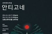 인천시 남동구 남동문화재단은 극단 아토(대표 이종민)의 ‘오이디푸스의 딸 '안티고네'’ 공연이 11월 14~15일 이틀간 남동소래아트홀 소래극장에서 개최된다고 5일 전했다. 이번 공연은 ‘극단 아토’가 고대 그리스 작가 소포클레스의 ‘오이디푸스 왕’과 ‘안티고네’ 두 작품의 연관성에 주목하여 창작한 작품이다. 법의 가치와 인간 본연의 가치가 대립할 때 마주하게 되는 선택에 관해 이야기하며 고전 작품임에도 현시대에 공감할 수 있는 메시지를 던지는 공연이다. ‘극단 아토’는 2025 공연장 상주단체 육성지원사업에 선정된 남동구 소재의 전문예술단체로, 국내외 명작을 새로운 시각으로 재창작하고 활발한 예술교육 활동을 전개하며 공연예술의 발전에 기여하고 있다. 지난 ‘2025 NPAF : 남동공연예술페스타’에서는 남동문화재단과 함께 협력하여 8주간 실시된 시민 대상 예술교육프로그램의 발표회를 진행했고, 야외무대에서는 뮤지컬 갈라 콘서트를 선보이며 남동구민들의 문화 향유 기회를 증진하는 데에 힘을 보탰다. 11월 14일 19시 30분, 11월 15일 15시 남동소래아트홀 소래극장에서 관람할 수 있