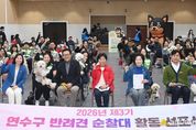 연수구는 지난 21일 구청 대회의실에서 반려견순찰대 ‘연수지킴댕댕이’ 활동 선포식을 열고 3기 순찰대원을 공식 위촉했다. 2024년 연수구는 인천 기초자치단체 최초로 직영 반려견순찰대 운영을 시작했으며, 올해 3기를 추가로 모집해 서류 및 현장 심사를 거쳐 총 87팀을 위촉했다. 이날 행사는 위촉장 수여식 후, 민재연 수의사의 ‘안전한 순찰과 건강한 일상생활을 위한 반려견 운동 가이드’ 강좌와 반려견순찰대 기본 사항 및 순찰 방법에 대한 교육이 진행됐다. ‘연수지킴댕댕이’는 반려견과 함께하는 일상적인 산책을 통해 우리 동네 구석구석을 살피며 생활 불편 사항을 점검하고 펫티켓을 홍보한다. 순찰대는 야간 시간대 범죄취약지역을 중심으로 합동 순찰을 하고, 관내 공원에서 ‘펫티켓 홍보 캠페인’ 등을 추진할 계획이며, 구는 연말 순찰대 활동 사례 발표를 통해 우수 순찰대원을 표창할 예정이다. 반려견순찰대는 지난해 4월부터 9개월간 총 5,640회 순찰했으며, ▲112 신고 13건, ▲안전신문고 신고 130건 등 총 143건의 신고를 접수했다. 이재호 구청장은 “순찰대의 모범적인 활동