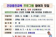 예산군 내포보건지소는 지역 주민의 건강증진과 활기찬 노후생활 지원을 위해 ‘2026년 건강증진교육 프로그램’ 참여자 12명을 오는 27일까지 선착순 모집한다. 이번 프로그램은 주민 참여형 통합 건강증진 교육으로 건강에 관심 있는 55세부터 75세까지 내포신도시 거주 주민이면 누구나 신청할 수 있으며 참가비는 전액 무료다. 교육은 4월 7일부터 6월 9일까지 매주 화요일 주 1회씩 총 9회 과정으로 내포보건지소 프로그램실에서 진행되며, 주요 내용은 △두뇌자극 음악활동 △한방비누 및 천연 건강용품 만들기 △근력 강화 및 균형감각 운동 △오감 자극 소근육 활동 △생명지킴이 자살예방 교육 △만성질환 예방을 위한 영양관리 등으로 신체 건강과 정신 건강을 함께 관리할 수 있도록 운영된다. 내포보건지소 관계자는 “이번 건강증진교육 프로그램이 주민들의 신체 건강뿐 아니라 정서적 활력과 사회적 교류를 높이는 계기가 되길 바란다”며 “앞으로도 지역 주민의 건강 수준 향상을 위해 다양한 건강증진 프로그램을 지속적으로 운영하겠다”고 말했다.