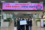 수원 영통중학교 창업동아리 학생들이 창업 활동 수익금을 모아 수원시 취약계층 시민을 위해 기부했다. 1월 29일 수원시청 본관 1층 로비에서 열린 기부금 전달식에는 윤영숙 시민복지국장, 영통중학교 창업동아리 학생 등이 참석했다. 학생들은 직접 디자인·제작한 탁상용 달력 100개를 판매해 마련한 수익금 45만 원을 수원시에 전달했다. 수원시는 기부금을 취약계층 시민 지원을 위해 사용할 예정이다. 영통중학교 창업동아리 학생들은 “작은 나눔이지만 어려운 이웃들에게 도움이 되기를 바라는 마음으로 기부에 참여했다”며 “직접 만든 작품으로 나눔을 실천할 수 있어 기쁘다”고 소감을 밝혔다. 윤영숙 시민복지국장은 “학생들이 활동 수익금으로 이웃사랑을 실천한 모습이 대견하다”며 “따뜻한 나눔이 지역사회 전반으로 확산되기를 바란다”고 말했다.