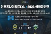 인천관광공사는 인천유나이티드와 함께 ‘인천유나이티드F.C. X 2026 상플응원단’을 공동 개최한다고 밝혔다. 이번 행사는 원정경기 현장 방문이 어려운 시민과 축구 팬들이 도심 속에서 함께 경기를 관람하고 응원할 수 있도록 기획된 프로그램으로, 지역 내 새로운 스포츠 문화 콘텐츠로 자리매김할 것으로 기대된다. 행사는 인천 중구 상상플랫폼 웨이브홀에서 총 5회에 걸쳐 진행된다. 오는 4월 21일 전북현대와의 원정경기를 시작으로 ▲5월 5일 대전 하나시티즌전 ▲8월 2일 제주SK FC전 ▲8월 23일 광주FC전 ▲9월 12일 울산HD FC전 등 주요 원정경기 일정에 맞춰 운영될 예정이다. 행사 현장에서는 원정경기 생중계와 함께 다양한 시민 참여형 프로그램이 마련된다. 스코어 및 득점자 예측 이벤트를 비롯해 하프타임에는 응원가ㆍ선수 맞히기 등 관람객이 함께 즐길 수 있는 참여형 이벤트가 진행된다. 당첨자에게는 인천유나이티드 홈경기 예매권과 구단 MD 상품 등 다양한 경품이 제공되며, 현장에는 구단 MD 판매 부스도 함께 운영된다. 인천관광공사는 이번 프로그램을 통해 상상플랫폼의