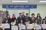 의왕시청소년재단은 12월 4일 의왕시청소년수련관에서 (사)영토지킴이 독도사랑회 의왕지회와 함께 청소년 장학금 전달식을 진행했다. 이날 전달식에는 독도사랑회와 재단 관계자, 장학금 수혜 청소년 6명이 참석했다. 의왕시청소년재단과 독도사랑회 의왕지회는 지난 7월 8일 광복 80주년 기념 ‘디지털 독도체험관’을 공동 운영하며 협력의 기반을 마련한 바 있다. 이번 장학금 전달은 이러한 협력의 연장선상에서 이뤄졌으며, 독도사랑회 의왕지회는 지난 백운예술제 부스 운영을 통해 발생한 수익금 200만 원을 청소년 장학금으로 기탁했다. 전용복 회장은 “이번 전달식은 지역사회가 청소년의 성장을 위해 뜻을 모으는 의미 있는 자리”라며, “앞으로도 청소년의 교육·문화·성장을 지원하는 다양한 협력 사업을 의왕시청소년재단과 함께 추진하겠다”고 밝혔다.
