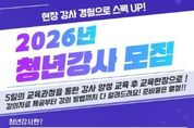 (재)천안시청소년재단 천안시태조산청소년수련관이 2월 7일까지 ‘2026년 청년강사 양성 사업’ 참여자를 모집한다. 올해로 5년째를 맞이한 이번 사업은 청년들에게 교육 현장에서 직접 강의할 기회를 제공함으로써 실무 역량 강화와 진로 탐색을 돕기 위해 기획됐다. 모집 대상은 20~30세까지의 대학 재학생 및 졸업생이다. 참가는 홍보 포스터 내 정보무늬(QR코드)를 통해 신청 가능하다. 선발된 인원은 2월 중 양성 교육을 거쳐 청년강사로 정식 활동하게 된다. 청년강사에게는 강사비 지급, 활동 확인서 발급, 우수 활동자 표창, 강의 교안 제공 등 다양한 혜택이 주어진다. 자세한 사항은 천안시태조산청소년수련관 누리집을 확인하거나 전화로 문의하면 된다. 김응일 (재)천안시청소년재단 대표이사 직무대행은 “청년강사 양성 사업을 통해 청년들이 교육 현장에서 실질적인 경험을 쌓고, 지역사회와 함께 성장하는 계기가 되길 바란다”고 말했다.