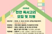 천안시 쌍용도서관은 내달부터 독서동아리의 활동을 지원하는 ‘천안 독서고리’ 사업을 추진한다고 23일 밝혔다. 쌍용도서관은 지난 2016년부터 독서고리 사업을 통해 570여 개의 독서동아리를 지원해왔다. 지원 대상은 매월 1회 이상 정기모임을 하는 5인 이상 독서동아리다. 사업에 선정되면 토론도서 및 강사초청, 특별강좌 참여, 활동 장소 제공, 동아리 주최 행사 홍보 등의 지원을 받을 수 있다. 신청은 쌍용도서관 방문 및 전자우편을 통해 가능하며, 자세한 내용은 천안시도서관 누리집에서 확인할 수 있다. 도서관 관계자는 “독서동아리는 시민이 주체가 되어 만들어 가는 생활 밀착형 독서문화”라며 “앞으로도 시민들의 자발적인 독서활동이 지속될 수 있도록 다양한 지원을 이어갈 것”이라고 말했다.