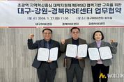 강원라이즈(RISE)센터(센터장 김미숙)는 1월 27일 대구라이즈센터 회의실에서 대구라이즈센터(센터장 최정건), 경북라이즈센터(센터장 박대현)와 ‘초광역 RISE 협력체계 구축을 위한 업무협약’을 체결했다고 밝혔다. 이번 협약은 정부의 5극 3특 성장전략에 발맞춰 ▲강원-대구-경북 간 초광역 RISE 사업 발굴 및 협업 강화 ▲지역정주·취업 등 RISE 성과제고를 위한 권역 간 연계 협력 강화를 목적으로 추진됐다. 특히 강원 중심의 RISE사업을 초광역 대경권(대구·경북)까지 확장했다는 점에서 의미가 크다. 이번 업무협약은 다음과 같은 핵심 협력 사항이 포함됐다. ◦ 초광역 RISE 연계 과제 발굴을 위한 협력 체계 구축 ◦ 초광역 RISE 추진을 위한 공동정책 발굴 및 사업 구상 협력 ◦ 초광역 RISE 성과 창출을 위한 지속적·유기적 협력 체계 구축 아울러 세 기관은 향후 강원–대경권 초광역 사업 발굴과 실질적 성과 창출을 위해 실무 담당자 협의회를 정례화하고, 권역 내 취업자 확대를 위한 상호 교류형 채용박람회 공동 개최 등 구체적인 협력 방안을 단계적으로 추진해 나갈 계획이다. 강원, 대구,