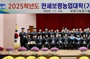 보령시는 농업의 변화와 혁신을 선도할 미래지향적 지역 농업인재를 육성하기 위해 지난 3월부터 약 8개월간 운영해온 ‘만세보령농업대학’이 농업리더 55명을 배출하며 성공리에 마무리됐다고 밝혔다. 시는 20일 농업기술센터 농업교육관에서 김동일 보령시장과 농업리더 등 관계자가 참석한 가운데 2025학년도 만세보령농업대학 졸업식을 개최했다. 만세보령농업대학은 농업환경 변화에 능동적으로 대처해 나갈 인재를 육성하고 지역 농업의 창조적 인재 양성과 평생교육 시스템을 구축하기 위한 교육 프로그램으로, 2008년부터 현재까지 농업전문기술을 갖춘 농촌리더 총 1,367명을 배출했다. 올해는 기본과정인 친환경농학과와 전문과정인 미래농업과 등 2개 학과로 편성해 지난 3월 26일부터 21회에 걸쳐 100시간 동안 농업 이론과 실습, 선진 농업 현장 견학을 통한 농업전문기술을 배양했다. 이번 졸업식에서는 친환경농학과(기본과정) 36명, 미래농업과(전문과정) 19명 등 총 55명의 졸업생이 영예로운 졸업증서를 받았다. 특히 학생회 자치활동 공로로 강양수 학생회장을 비롯한 6명이 공로상을, 자체평가 및 졸업과제