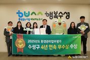 대구 수성구는 지난 24일 대구시가 주관하는 ‘2025년도 환경관리업무 평가’에서 4년 연속 우수상을 수상했다. 이번 평가는 대구시 9개 구·군을 대상으로 2025년 한 해 동안 추진한 환경정책, 기후대기, 수질개선 등 총 28개 항목의 환경관리 업무 추진 실적을 종합적으로 평가해 우수기관을 선정하는 방식으로 진행됐다. 수성구는 용학도서관 기후환경교육 우수도서관 지정, 생태관광 투어 등 다양한 환경교육 프로그램 운영, 녹색제품 구매 실적, 수질오염물질 배출사업장 관리, 자연환경 보전을 위한 망월지 생태축 복원사업 추진 등 다양한 분야에서 성과를 인정받았다. 김대권 수성구청장은 “탄소중립을 통해 기후변화에 적극 대응해야 하는 중요한 시기에 4년 연속 우수기관으로 선정돼 뜻깊다”며 “올해도 환경관리 분야 및 자연환경 보전사업을 내실 있게 추진해 쾌적하고 살기 좋은 수성구가 되도록 최선을 다하겠다”고 말했다. [뉴스출처 : 대구시 수성구]