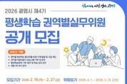 광명시가 시민 주도의 생활권 중심 평생학습 정책을 강화하기 위해 ‘제4기 평생학습 권역별실무위원회’ 신규 위원 100명을 공개 모집한다. 평생학습 권역별실무위원회는 마을 단위의 학습 의제를 발굴하고 현장 맞춤형 프로그램을 기획·운영하는 민관 협력 기구다. 위원회는 ▲으뜸터(광명1~3동) ▲다울마을(광명4~7동) ▲철산지기(철산1~4동) ▲하안처럼(하안1~4동) ▲예터지기(소하·일직·학온동) 등 5개 권역으로 구성된다. 지원 자격은 광명시에 주민등록이 되어 있는 만 19세 이상 시민이라면 누구나 가능하며, 해당 권역 소재 사업장이나 기관·단체 근무자도 신청할 수 있다. 선발된 위원은 4월 1일부터 2년간 ▲마을 평생학습 의제 발굴 및 사업 제안 ▲마을배움터 프로그램 기획 및 운영 ▲평생학습축제 기획·참여 등 지역 학습 생태계 조성을 위한 핵심 역할을 수행하게 된다. 모집 기간은 오는 2월 19일부터 2월 27일까지다. 접수는 이메일 또는 광명시 평생학습원 방문을 통해 가능하다. 시는 3월 중 서류심사와 면접을 거쳐 최종 위원을 선발하고, 3월 말 위촉식을 진행할 계획이다. &