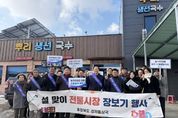 충북도 경제통상국은 2일 옥천군을 찾아 설맞이 전통시장 장보기 행사를 진행하고, 복지시설을 방문하여 소외된 이웃을 위로했다. 특히, 장보기 행사가 진행된 옥천 청산시장은 1930년 개설되어 90여 년의 역사를 간직한 시장으로, 현재까지도 2일과 7일에 5일장이 열리고 있다. 이날 이제승 경제통상국장을 비롯한 직원 25명은 시장 곳곳을 둘러보며 제수용품과 지역 농·축산물을 구입하는 것은 물론 상인들과 소통하고 현장의 애로사항을 청취했다. 건전한 소비문화 정착을 위한 물가 안정 캠페인도 함께 펼쳤다. 아울러, 옥천읍 소재 노인복지시설인 옥천꽃동네 성모노인요양원을 방문해 위문품을 전달하고 따뜻한 나눔의 시간도 가졌다. 이제승 도 경제통상국장은 “이번 장보기 행사가 지역경제의 최일선에 있는 전통시장 활력 제고에 조금이나마 보탬이 됐기를 바란다”며 “도민 여러분께서도 설을 맞아 가족과 함께 전통시장을 방문하여 지역경제에 활기를 불어넣어 주시길 당부드린다”고 말했다.
