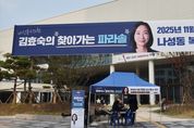 김효숙 세종특별자치시의회(나성동, 더불어민주당) 부의장이 시민과 직접 소통하고 세종시와 나성동 발전을 위해 고견을 듣는 ‘찾아가는 파라솔’ 행사를 13일 오전 10시부터 오후 5시까지 나성동 행복누림터 앞에서 개최했다. 지난 2023년 11월 의정보고회 개최 이후 더 많은 시민을 만나기 위해 지난해부터 11월이면 야외에 아침부터 저녁까지 파라솔을 펴고 주민과 당원을 만나는 자리를 마련하고 있다. 김효숙 부의장은 “정해진 짧은 시간 동안 이뤄지는 보고회 형식으로는 더 많은 분을 뵙기 어려워 하루 종일 시민을 기다리는 현장 상담 방식을 바꿨다”며 “생각보다 많은 분이 찾아와주셨는데 오전 10시부터 시작인데도 오전 9시 20분부터 기다리고 계시는 시민분도 계셨고, 오가다 편하게 들리거나 지난해에 이어 또 방문하신 단골 주민도 생겼다”고 설명했다. 이어 “우리 지역을 위해 일하는 시의원과 커피 한 잔 하며 편하게 현안에 대해 대화할 수 있다는 것을 가장 좋게 평가하시는 것 같다”며 “나성동 학생들의 통학 및 진학, 도시상징광장 활성화, 어반아트리움 등 상가공실 문제 등 나성동 주요 현안에 대한 내용을 넘어 세종시 전반