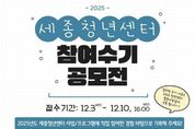세종일자리경제진흥원이 운영하는 세종청년센터가 센터 사업 및 프로그램 참여자들의 경험과 이야기를 담기 위한 ‘2025년 세종청년센터 참여 수기 공모전’을 개최한다. 이번 공모전은 센터 사업 및 프로그램에 참여한 청년들의 다양한 사례를 수집하고, 현장에서 느낀 진솔한 경험담을 통해 청년들의 참여 의미를 더욱 널리 알리기 위해 마련됐다. 공모 분야는 총 3개 유형이다. ▲유형1은 세종청년센터 사업 및 프로그램 참여 청년, ▲유형2는 청년도전지원사업 참여 청년, ▲유형3은 청년성장프로젝트 참여 청년을 대상으로 하며, 1인당 1편만 응모할 수 있다. 참여 방식은 자유주제로, 2025년도 센터 사업 및 프로그램 참여 경험을 바탕으로 A4 1~4매(500자 이상)의 한글 파일 형식의 수기를 작성해 제출하면 된다. 공모 접수는 10일 16시까지이며, 세종청년센터 홈페이지에서 신청서를 내려받아 수기와 함께 제출하면 된다. 센터 사업에 참여한 세종시 청년이라면 누구나 지원할 수 있다. 참여자 모두에게는 세종청년마일리지 ‘세마일’* 20,000점이 적립되며, 부문별 ▲최우수 1명 ▲우수 1명 ▲장려 1명