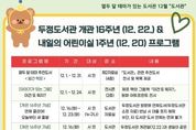 천안시 두정도서관은 12월 ‘도서관’을 테마로 도서관을 운영한다고 5일 밝혔다. 두정도서관에서는 도서관을 테마로 한 추천도서와 세상에서 가장 아슬아슬하고 가장 안전한 모험을 만날 수 있는 ‘이건 또 뭐지?’ 도서의 원화 아트프린트 전시를 만나볼 수 있다. 이와 함께 도서관 개관 16주년과 내일의 어린이실 1주년을 맞아 ▲‘반짝이는 리듬케이크’ 타악기 콘서트 ▲특별 주문 케이크 만들기 ▲책 속 진짜 케이크 만들기 ▲도서 연체 면제 이벤트 ▲도서관 대출자 대상 이벤트 등 다채로운 행사를 선보인다. 프로그램 접수는 천안시도서관 누리집에서 가능하며, 자세한 내용은 누리집에서 확인하거나 두정도서관으로 문의하면 된다. 두정도서관 관계자는 “그동안 이용해주신 시민 여러분께 감사의 마음을 담아 개관 16주년과 어린이실 1주년을 기념하는 프로그램을 준비했다”며 “앞으로도 시민과 함께 성장하는 도서관이 되도록 노력할 것”이라고 말했다.