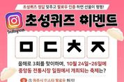 원주시는 10월 13일부터 26일까지 공식 인스타그램에서 초성퀴즈 이벤트를 실시한다. 시는 앞서 두 차례의 SNS 활성화 이벤트를 진행했으며, 올해 마지막인 세 번째 행사로 인스타그램 초성퀴즈를 준비했다. 이번 초성퀴즈 제시어는 ‘ㅁㄷㅊㅈ’이며, 문제는 10월 24일부터 26일까지 3일간 원주 중앙동 전통시장 일원에서 열리는 축제의 이름이다. 이벤트에 참여하려면 원주시 공식 인스타그램을 팔로우한 뒤, 퀴즈 정답과 팔로우 인증 사진을 이벤트 참여 페이지(네이버 폼)에 입력·제출하면 된다. 기존 구독자를 포함해 전 국민 누구나 참여할 수 있다. 추첨을 통해 총 100명에게 치킨세트(3명)와 커피(97명) 쿠폰이 지급된다. 이벤트 당첨자는 10월 31일 발표되며, 경품은 11월 4일 발송될 예정이다. 자세한 내용은 원주시 공식 SNS(인스타그램, 페이스북, 블로그), 홈페이지, 전광판 등에서 확인할 수 있다. 한편 원주시 공식 인스타그램은 현재 31,779명의 팔로워를 보유하고 있으며, 유익한 시정 소식과 함께 주요 행사, 축제 등 다양한 볼거리와 즐길 거리를 숏츠, 카드뉴스 형식으로 제공하