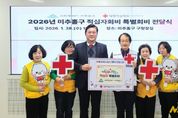 인천 미추홀구는 28일 구청장실에서 대한적십자사 인천지사(회장 조의영)와 적십자봉사회 미추홀구협의회(회장 조혜정) 등이 참석한 가운데 적십자 특별회비 200만 원을 전달했다. 이날 전달된 특별회비를 포함한 적십자회비는 재난 발생 시 이재민 구호 활동, 취약계층 및 복지 사각지대 위기가정 지원 등 각종 인도주의 활동에 사용될 예정이다. 이영훈 구청장은 “지역 곳곳의 소외된 이웃에게 희망을 전하는 의미 있는 일에 동참할 수 있어서 기쁘다.”라며, “지역사회에 따뜻한 기부 문화가 널리 퍼질 수 있도록 함께 노력하겠다.”라고 말했다. 한편, 구는 매년 지역사회 소외계층을 돕기 위해 적십자 특별회비 납부에 동참하고 있으며 이를 통해 지역 내 어려운 이웃들에게 실질적인 도움을 주고 있다.