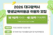 대구광역시는 교육 격차를 해소하고 시민들의 역량 개발과 자아실현을 돕기 위해 3월 19일부터 ‘2026년 대구광역시 평생교육이용권’ 1차 이용자 모집을 시작한다. 평생교육이용권은 사회·경제적 여건 등으로 평생학습 참여가 어려운 시민에게 수강료와 교재비 등을 지원하는 제도다. 대구시는 지난해 4,800여 명의 시민에게 자격증 취득, 직업능력 개발, 디지털 역량 강화 등 다양한 학습 기회를 제공했다. 올해 지원 규모는 약 5,000명으로, 두 차례에 나눠 모집한다. 1차 모집은 3월 19일부터 4월 2일까지 저소득층과 노인 등을 대상으로 진행된다. 이용권별 신청 대상은 ▲일반 이용권은 19세 이상 기초생활수급자 및 차상위계층 등 ▲AI·디지털 이용권은 30세 이상 시민 ▲노인 이용권은 65세 이상 시민이다. 2차 모집인 장애인 평생학습 참여 확대를 위한 ‘장애인 평생교육이용권’은 4월 14일부터 4월 27일까지 별도로 접수할 예정이다. 이용권 신청은 평생교육이용권 누리집을 통해 온라인으로 신청하면 된다. 자세한 사항은 대구시 평생교육이용권 누리집 또는 상담센터