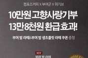부여군은 연말 고향사랑기부제 기부자 확보 및 부여 특산물인 밤을 활용하여 출시한 컴포즈커피 신메뉴인 ‘부여 밤 라테와 부여 밤 생초콜릿 라테’를 홍보하기 위하여 특별 이벤트를 기획했다. 이벤트 기간은 12월 2일부터 12월 31일까지며, 컴포즈커피 앱을 통해 위기브(wegive) 이벤트 페이지에 접속한 뒤, 충남 부여에 10만 원 이상 기부하면 자동으로 참여자가 된다. 이벤트는 선착순 1,000명을 대상으로 진행되며, 이번 이벤트를 계기로 전국 밤 생산량 1위인 부여 밤을 널리 홍보하고, 고향사랑기부제 기부자도 확보하여 부여군에 가치 있는 기금 사업을 추진하고자 계획됐다. 부여군 관계자는 “이번 기획 이벤트를 통해 더 많은 분이 기부에 참여해서 부여 밤 활용 신메뉴도 맛보시고, 실속 있는 고향사랑기부 혜택도 함께 누리시면 좋겠다.”라고 말했다. 고향사랑기부제는 주민등록상 주소지를 제외한 전국 지자체에 연간 최대 2,000만 원까지 기부할 수 있는 제도다. 기부금 10만 원까지는 전액 세액공제가 적용되고, 초과분은 16.5% 세액공제를 받을 수 있다.