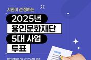 용인문화재단은 1월 28일부터 2월 3일까지 시민참여를 통해 2025년 재단의 주요 사업을 선정하는 '시민이 선정하는 2025년 용인문화재단 5대 사업 온라인 투표를 진행한다. 이번 ‘용인문화재단 5대 사업’ 투표는 재단의 2025년 주요 성과사업 후보 13개 가운데시민이 직접 대표 사업을 선택하는 방식으로 운영된다. 참여자는 1인당 3개 사업까지 선택할 수 있으며, 득표 수가 높은 상위 5개 사업이 ‘용인문화재단 5대 사업’으로 선정된다. 주요 성과사업 후보는 ▲용인포은아트홀 리뉴얼 재개관 ▲용인포은아트홀 공연 경쟁력 강화 ▲생활권(처인구) 기획 공연 확산 ▲제2회 대한민국 대학연극제 ▲가을별빛콘서트 & 어텀라운지페스티벌 ▲조아용 시민 퍼레이드 ▲용인어린이상상의숲 ▲공생광장 문화예술 교육 ▲용인시민무용아카데미 ▲꿈의 극단 ‘용인’ ▲꿈의 오케스트라 ‘용인’ ▲용인문화예술공모 지원사업 ▲용인문화재단 장학사업 등 총 13개다. 투표는 온라인으로 진행되며, 용인문화재단 공식 홈페이지 또는 SNS 게시물 내 참여 링크를 통해 누구나 참여할 수 있다. 선정 결과는 재단 공식 SNS를 통해 발표될 예정이다. 재단은 투표 결과를 바탕