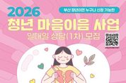 부산시는 정서적으로 어려움을 겪는 청년들의 마음 회복을 돕기 위해 '2026년 청년 마음이음 사업' 참여자를 모집한다고 밝혔다. 이 사업은 취업 준비, 대인관계, 미래에 대한 불안 등으로 심리적 어려움을 겪는 청년들이 전문 심리상담을 통해 정서적 안정을 찾고 건강한 사회 구성원으로 성장할 수 있도록 지원하는 사업이다. 시는 지난 2022년부터 청년들의 정서 안정과 마음 건강 증진을 위해 심리상담 지원을 지속적으로 추진해 오고 있다. 시는 올해 총 1,020명을 대상으로 심리상담을 지원한다. 1:1 심리상담 700명, 집단 심리상담 300명 규모로 운영하며, 특히 고립·은둔, 가족돌봄, 장기미취업 청년 등 취약계층 상담 인원을 20명 확대해 별도로 운영한다. 먼저, ‘1:1 심리상담’은 전문 상담사와의 상담을 통해 청년 개인의 상황과 고민을 깊이 있게 다룰 수 있도록 지원한다. 상담은 기본 5회기(회당 약 50분)로 진행되며, 상담 결과에 따라 필요할 경우 최대 2회까지 추가 상담을 받을 수 있다. 상담 일정은 참여자와 상담기관 간 협의를 통해 조정할 수 있다.