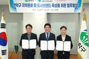 관악구가 정부의 주요 국정 목표인 ‘문화강국’ 기조에 발맞춰 ‘문화가 강한 지역 만들기’에 앞장선다. 구는 지난 24일 관악문화재단, 사단법인 문화강국네트워크와 함께 ‘관악구 지역문화 및 도시브랜드 육성을 위한 3자 간 업무협약(MOU)’을 체결했다. 사단법인 문화강국네트워크(이사장 이우종)는 대한민국 문화강국 비전 실현을 목표로 지역문화 진흥과 전문적인 문화 정책 연구 등을 활발히 전개하고 있는 민간 단체다. 이번 협약을 통해 세 기관은 관악구의 지역문화 발전과 ‘대한민국 청년수도 관악’ 도시브랜드 육성 기여에 상호 협력하게 된다. 주요 협력 사항은 ▲지역문화 정책의 연구 및 개발 ▲지역문화 진흥 및 도시브랜드 육성 사업 ▲지역 역사 문화유산 개발 사업 등이다. 구 관계자는 “관악구의 행정력, 관악문화재단의 현장 친화적 실행력, 문화강국네트워크의 전문적 정책 연구 역량을 결합해 시너지 효과를 낼 것”이라고 설명했다. 한편 구는 이번 협약을 기반으로 ‘도시브랜드 육성’과 ‘역사문화유산 개발’ 사업을 중점 추진한다는 방침이다. 전국에서 청년 인구 비율이 가장 높은