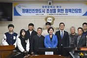 광주 북구의회 정달성 의원(용봉·매곡·삼각·일곡동/더불어민주당)이 13일 이숙희 의원과 함께 ‘장애인친화도시 조성을 위한 정책간담회’를 개최했다. 이번 간담회는 북구 장애인친화도시 조성의 현주소를 점검하고, 현장의 다양한 의견을 바탕으로 민·관·정 차원의 공감대 형성과 실질적인 정책 방향을 모색하기 위해 마련됐다. 이날 간담회에는 정달성·이숙희 의원을 비롯해 오방장애인자립생활센터장, 예그리나장애인센터장, 장애인문화관광센터 사무국장, (사)한국신장장애협회 광주협회 사무처장, 전남대 동아리 ‘내일프로젝트’ 대외협력부장, 북구청 관계공무원 등이 참석했다. 참석자들은 복지·문화·교통·교육 등 다양한 분야에서의 장애인 친화 정책에 대해 논의했다. 이숙희 의원은 “현재 물리적 환경개선을 위한 ‘무장애 도시 조성 조례’는 있지만, 행정서비스 중심의 정책은 아직 부족한 실정”이라며 “현장의 목소리를 반영해 장애인 복지 향상을 위한 소프트웨어 중심의 정책을 마련하겠다”고 말했다. 정달성 의원은 “이번 간담회는 장애와 비장애의 경계를 허무는 ‘북구형 포용도시’로 나아가는 첫걸음”이라며 “오늘 논의된 의견