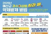 예산군농업기술센터는 식물방역법상 법정 금지병인 과수화상병 확산을 막기 위해 관내 사과·배 재배 농가를 대상으로 11일부터 18일까지 1∼4차 사전방제 약제를 무상 공급한다. 이번에 공급되는 사전방제 약제는 총 4종으로 △개화 전 1차 방제 ‘에스지세균박사’ △개화기 2차 방제 ‘옥싸이클린’ △3차 방제 ‘배차엔진품’ △4차 방제 ‘비온’이다. 효과적인 방제를 위해 1차 방제약제는 사과의 경우 신초 발아 전에, 배는 꽃눈 발아 직후에 살포해야 하며, 개화기 2·3·4차 방제는 기상 관측 정보를 바탕으로 읍·면별 꽃 감염 위험도를 예측해 위험도가 높게 나타나는 시기에 약제를 살포하는 것이 중요하다. 농업기술센터는 방제 효과를 높이기 위해 적절한 방제 시기를 농가에 문자로 안내할 계획이다. 아울러 과수화상병 확산을 막기 위해 방제 적기에 약제를 반드시 살포해야 하며, 발병 시 손실보상 관련 증빙을 위해 농가는 약제 방제 확인서와 살포한 약제 봉지를 1년간 보관해야 한다. 또한 농업기술센터는 ‘2026년 사과 방제력 및 화상병 약제 살포 시기 안내’ 홍보물을 함께 배부해 농가의 예방 활동을 적