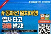 강원특별자치도와 강원관광재단은 오는 10월 2일부터 11월 16일까지‘KTX 동해선 철도여행 인증 이벤트’를 운영한다고 밝혔다. 추석 연휴와 가을철 성수기에 맞춰 동해선 철도여행 활성화를 위해 마련된 이번 이벤트는 강릉, 동해, 삼척, 부산 부전역 등 동해선 이용객을 대상으로 하며, 기차역과 열차 내 풍경 등의 사진과 동해선 열차 승차권·영수증을 인증하면 참여할 수 있다. 동해선 열차 이용객 누구나 전용 누리집(홈페이지)을 통해 이벤트 참여가 가능하며 추첨을 통해 백화점 상품권, 편의점 및 카페 모바일 상품권 등 다양한 경품이 제공된다. 최성현 강원관광재단 대표이사는 “이번 동해선 열차여행 인증 이벤트를 통해 동해선 철도여행의 매력을 확산시켜, 철도 정거장을 연계한 동해안권 관광을 더욱 활성화 시키겠다”고 말하며“다가오는 추석 명절, 동해선 철도를 이용하는 모든 분들의 여정이 더욱 편안하고 안전하시길 바란다”고 전했다. 자세한 이벤트 참여 방법은 동해선 철도여행 인증 이벤트 전용 누리집(홈페이지) 에서 확인할 수 있다. 한편, 올해 1월 개통한 동해선은 강릉을 비롯해 동해·삼척을 지나