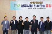 이범석 청주시장은 29일 임시청사 직지실에서 제106회 전국체육대회 출전을 앞두고 있는 직장운동경기부 선수단 감독들을 만나 격려했다. 오는 10월 17일부터 23일까지 부산광역시 아시아드주경기장을 포함한 82개 경기장에서 개최되는 전국체육대회에, 청주시 선수단은 총 328명이 27개 종목에 출전한다. 이 중 청주시청 직장운동경기부는 8개 부문*에 50명의 선수가 출전해 청주시의 위상을 드높일 예정이다. 감독들로부터 출전보고를 받은 이범석 시장은 “선수 여러분의 열정과 땀은 이미 청주시의 자랑”이라며 “이번 전국체전에서도 자신감을 갖고 그동안 갈고닦은 실력을 마음껏 펼쳐주시길 바란다. 청주시민들과 함께 여러분을 응원하겠다”고 따뜻한 격려와 응원의 메시지를 전했다.